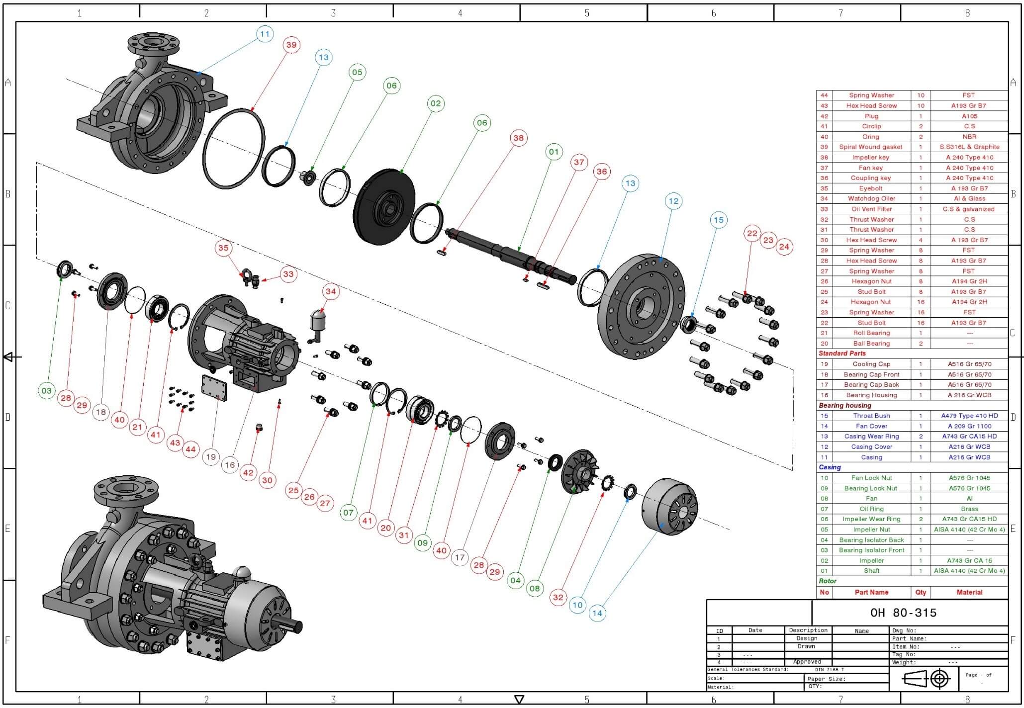 در ابتدا از پمپ OH2 شروع میکنیم و مراحل طراحی و ساخت آن را شرح می دهیم: