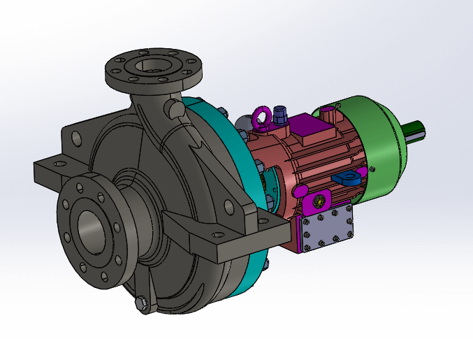 – مدلسازی سه بعدی اجزای مختلف پمپ شامل ایمپلر، دیفیوزر، شفت و بلبرینگها در نرمافزارهای تخصصی مانند SolidWorks